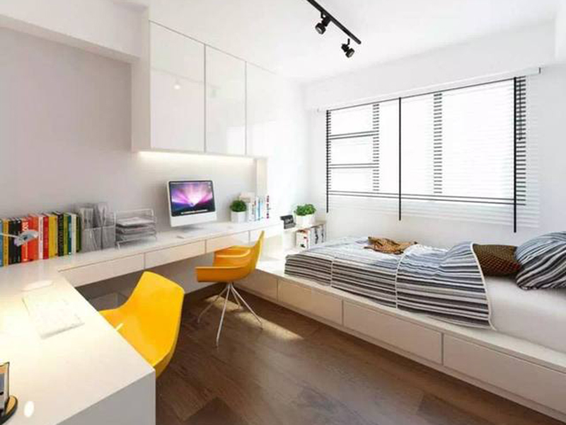 臥室需要營造的是簡單、輕松的氛圍,要求不能雜亂。所以對于一些多余的家具,像梳妝臺、電視櫃等家具就不需要了,還可以給一些面積小的臥室帶來更多的空間,讓視覺更寬敞、舒適、明亮。