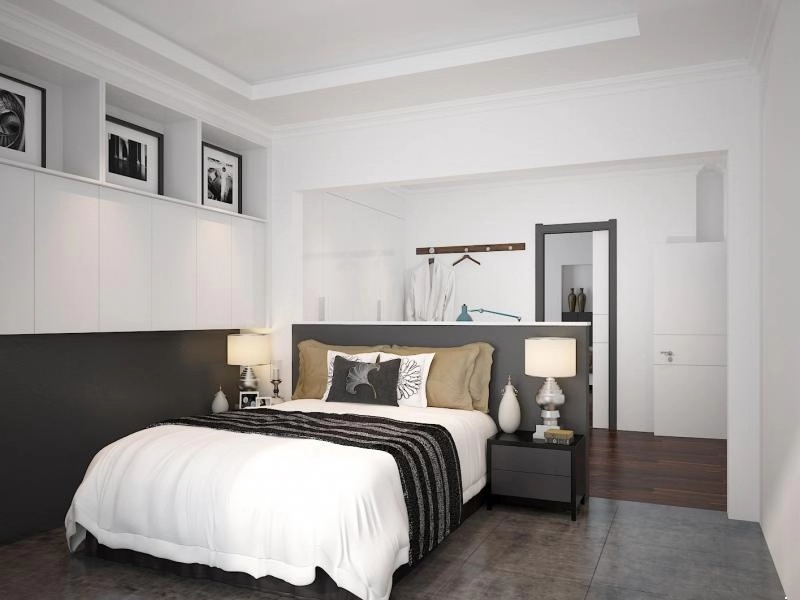 4、間小,怎麼才可以放下衣櫃。我們可以選擇客製化家具,成品的家具局限性太多了,客製化家具能是可以根據房間的尺寸來做一些調整和改變,把空間都充分的利用起來,讓空間顯得很寬敞。白色的家具能緩解小房間的壓迫感,榻榻米也是不錯的收納選擇。