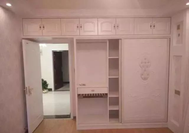 工人當場制作的衣櫃一般分為兩種情況:第一種類型:衣櫃帶頂櫃,這種衣櫃的大小一般在2米四五之間。為了使整個衣櫃看起來更美觀,會在衣櫃頂部預留10厘米,這樣的話可以在屋里打石膏線的時候把一規定也一起打上石膏線,看起來會更協調一點。
