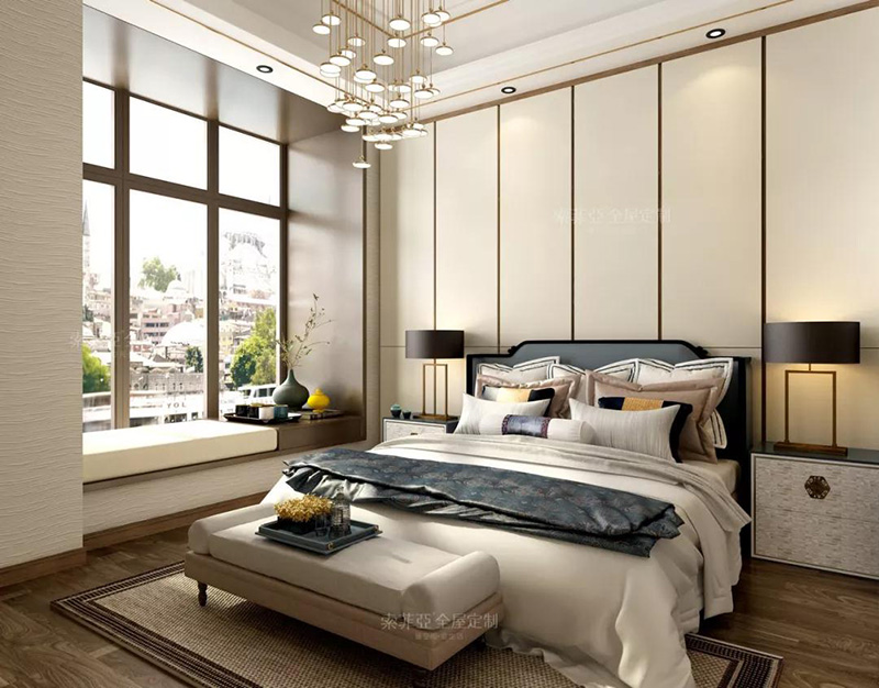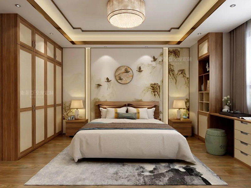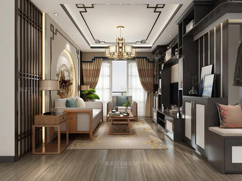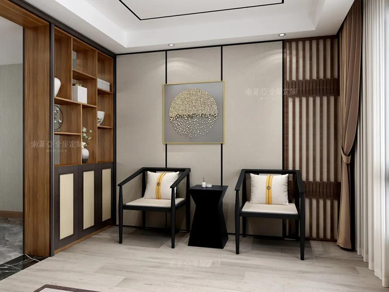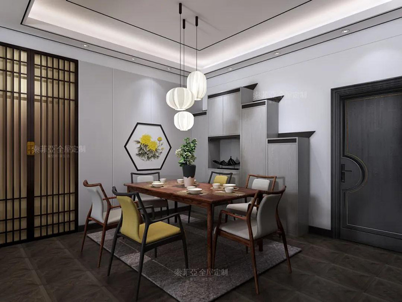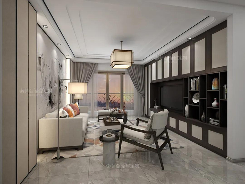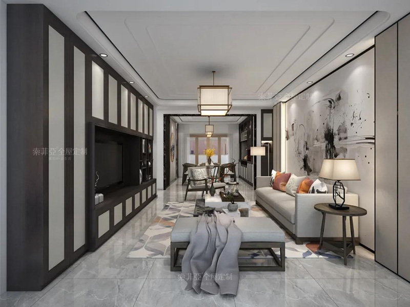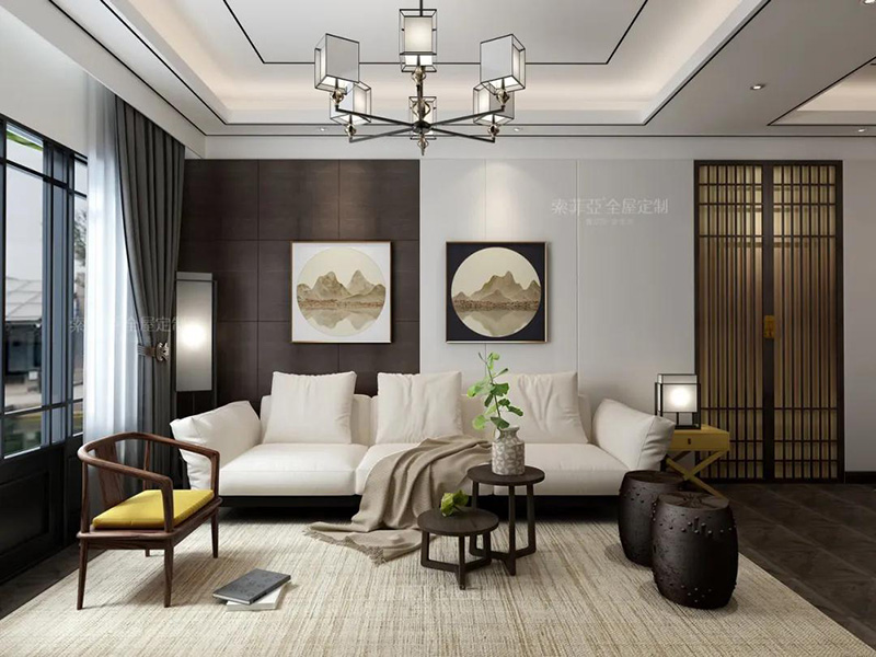 新中式風的軟裝偏愛木質自然質感,木色足夠古典和穩重,但有人會覺得有沉悶感,這時候用白色來中和,就能增強空間的靈動感。