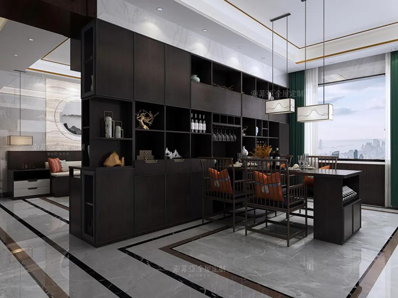 三者的調配,推薦用灰色作為背景墻底色,白色或淺灰作為地板顏色,再選購黑色桌椅凳或屏風單品,中式風情就展露無遺。