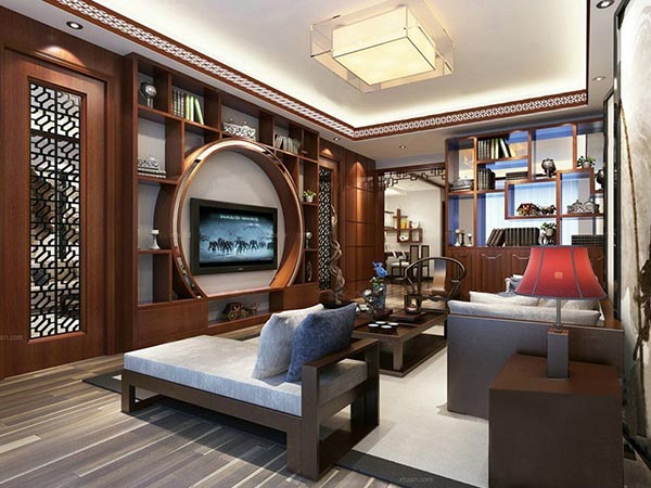 1、中式客廳裝潢要點-要注重墻面與地面裝飾材料