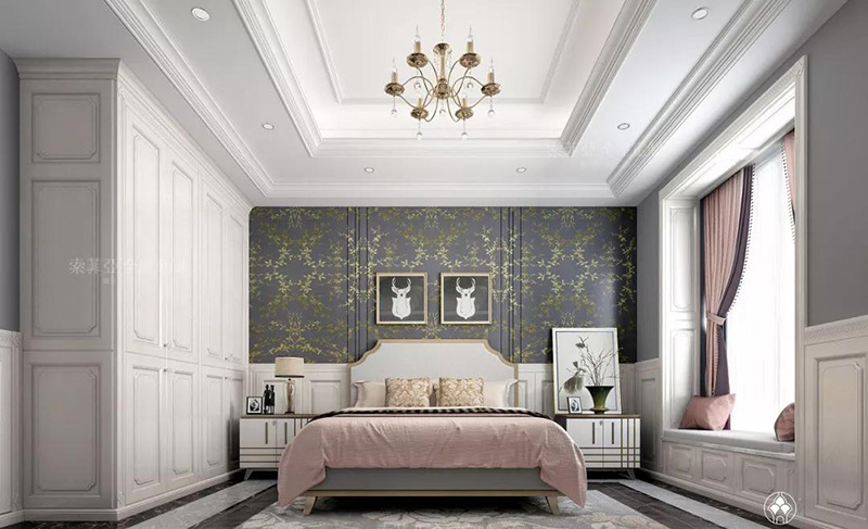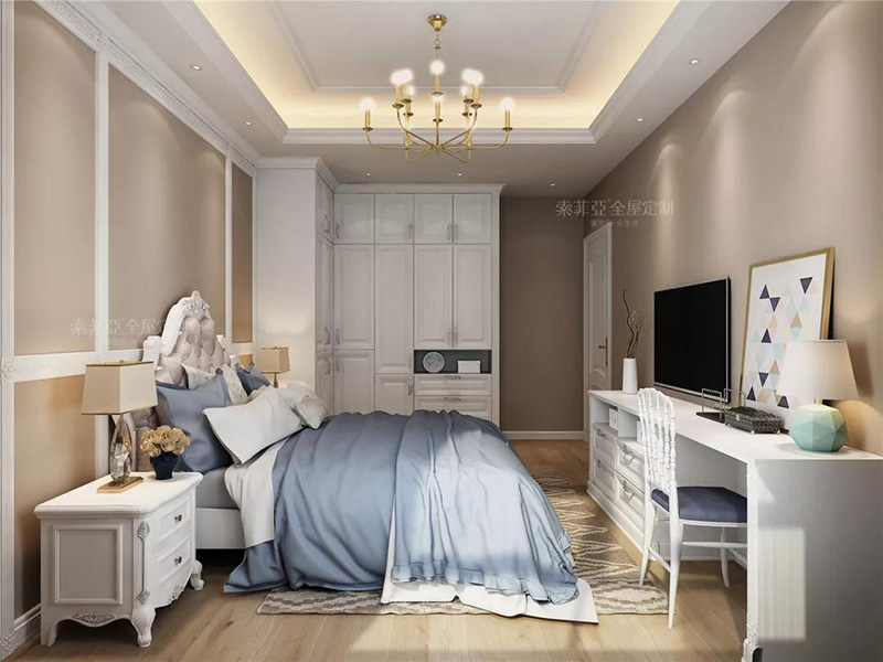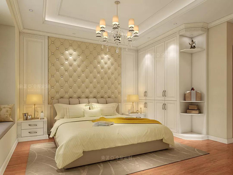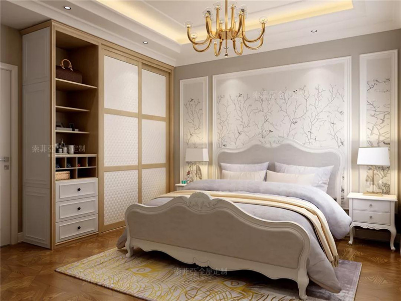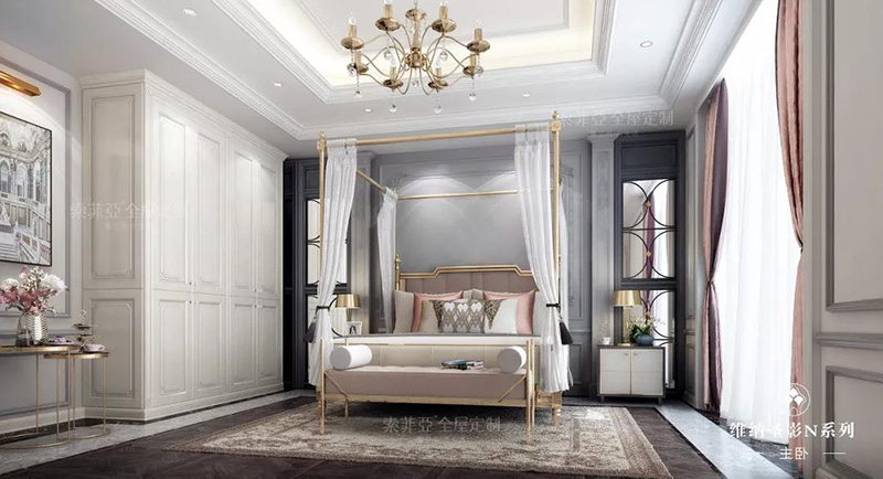 回型線條櫃門增添層次感,簡歐的精致提升了整個臥室的氣質。