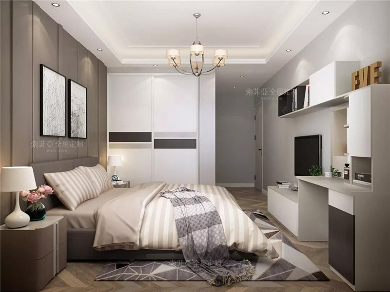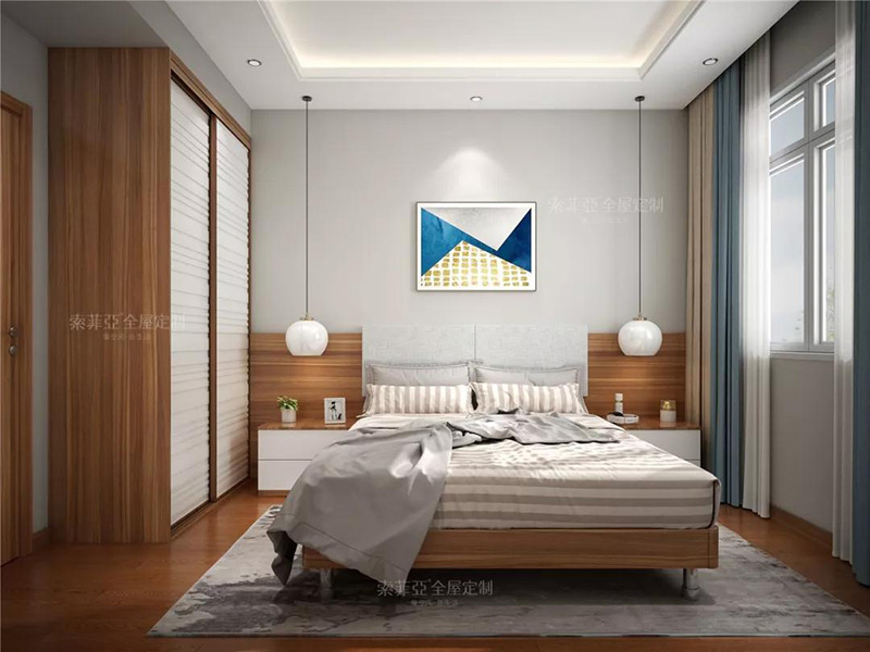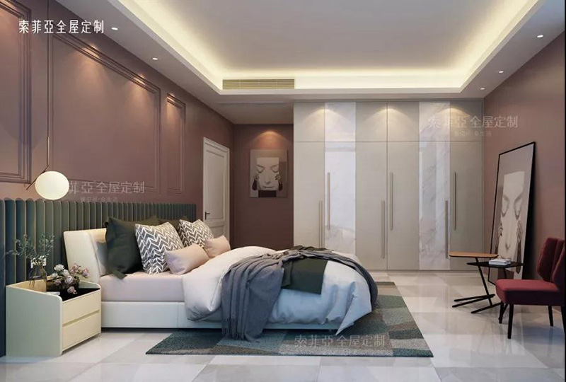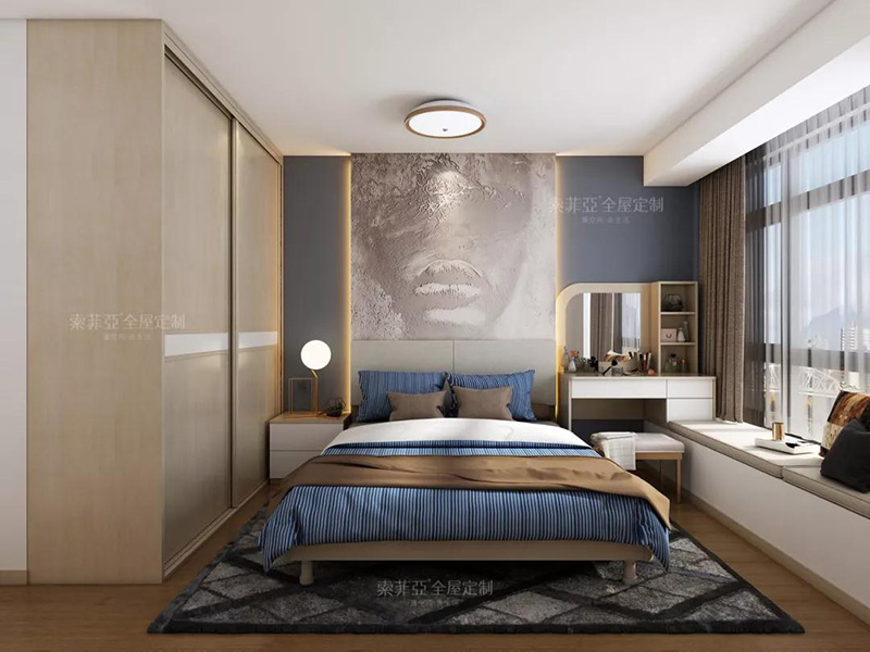床頭背景墻、床品、枕頭、臥室地毯等色調都可以按個人喜好搭配,不會造成沖突。