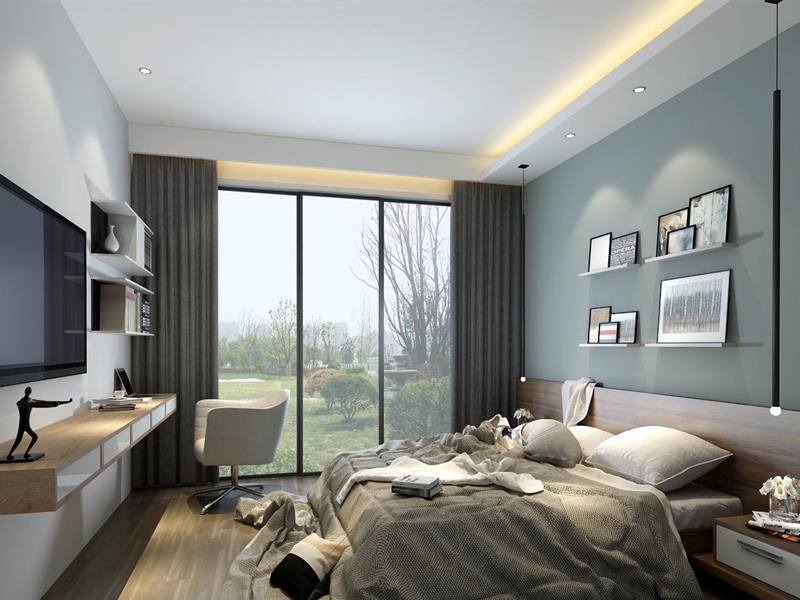 然后是墻面顏色這一塊。因為不到10坪左右小臥室的採光是有局限性的,在墻面的顏色上要選擇較明亮的顏色。比如,冷色調就是一個很不錯的選擇,因為冷色調可以擴大視覺上的空間面積。