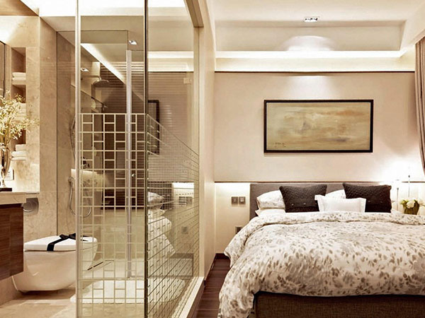 有些大面積房屋的主人房一般都會帶有衛生間,那么,在臥室和衛生間隔斷裝潢很有必要,畢竟,臥室是休息舒適的空間,衛生間的異味或雜音會影響睡眠質量。