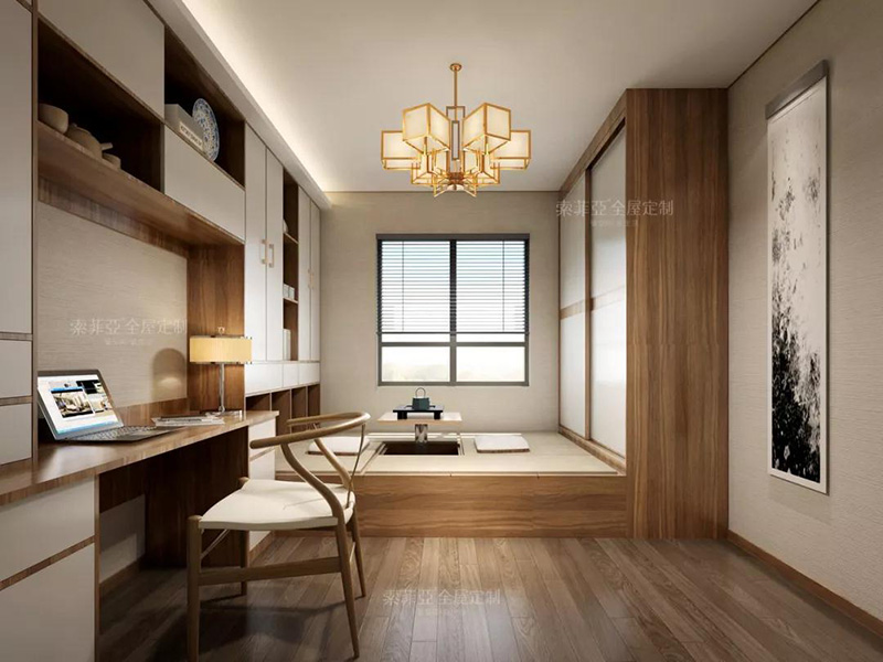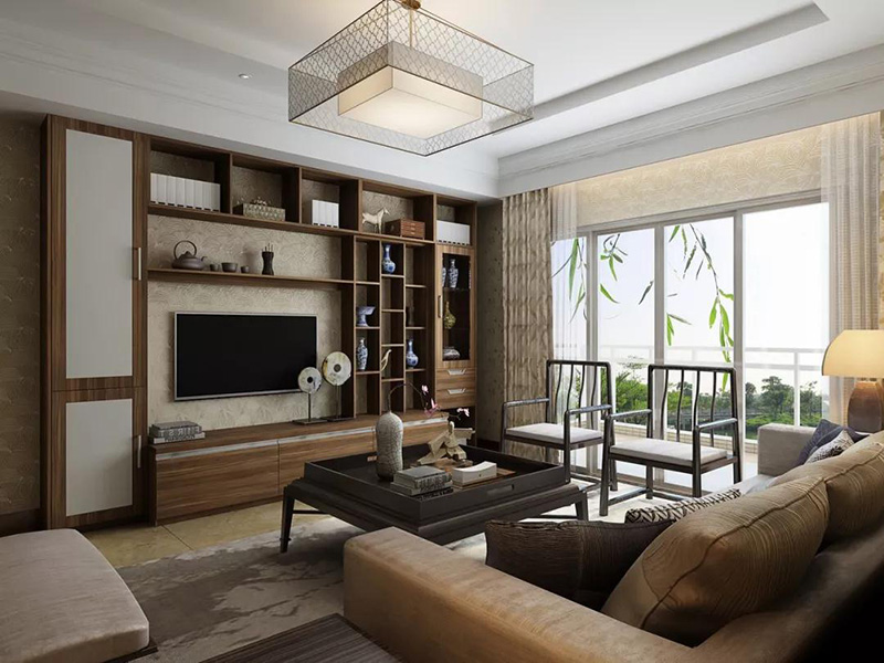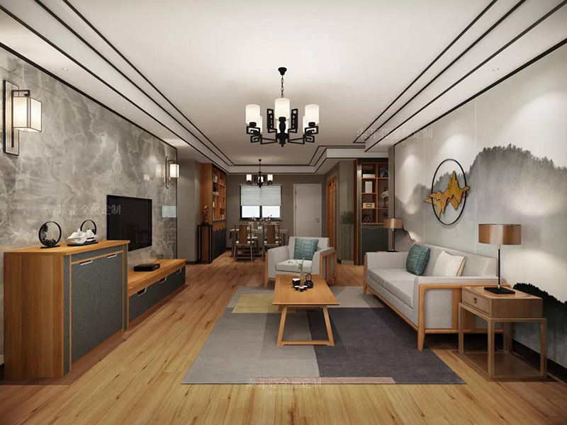第一種相對大眾化一些,素雅自然的色調也能輕松贏得男女老少的喜愛。以原木、胡桃木等棕色系為主,是目前比較普遍和流行的新中式家裝配色。