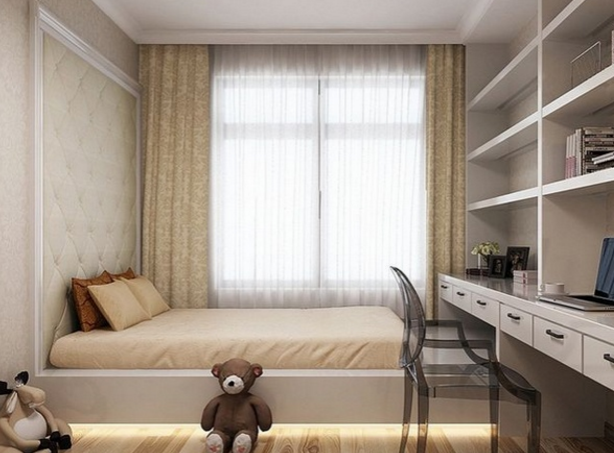 榻榻米寫字臺搭配可以當做一個書桌,在兒童房比較常見這種設計。但是如果是家中的房間比較少的話也可以在普通臥室中設計寫字臺,這樣的臥室可以當做書房或者是會客廳,節省了很多的空間。那么榻榻米寫字臺的優點是什麼?榻榻米寫字臺最佳高度是多少?