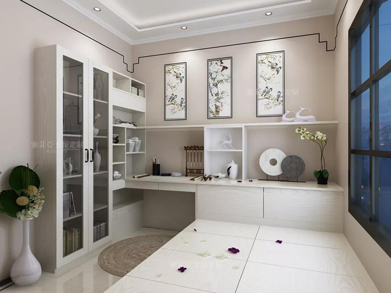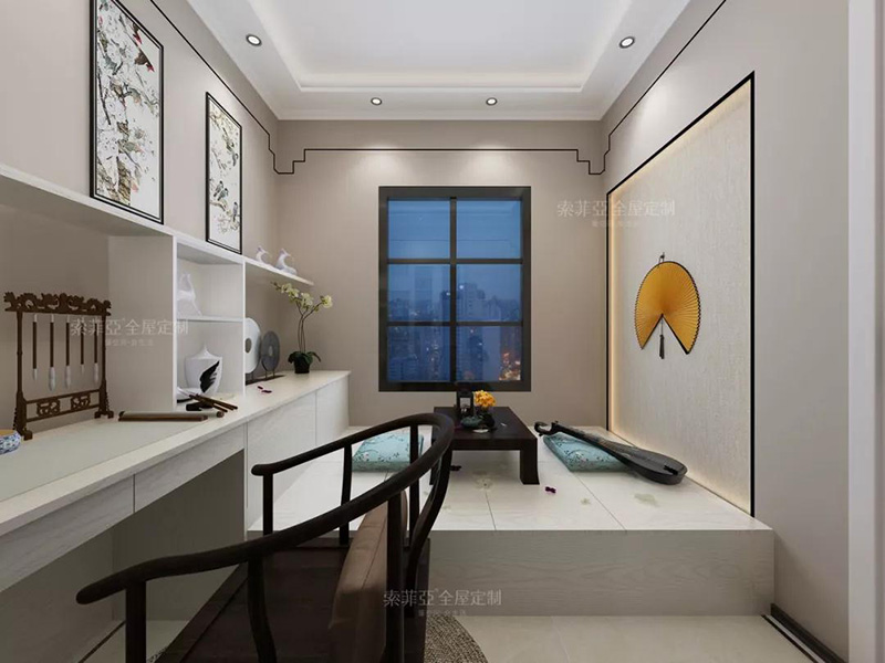 還可以在中間設計一個升降臺,對于不喜歡盤腿的人也極度友好,讓書房變成充滿禪意的茶室。