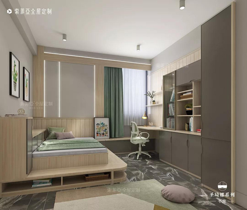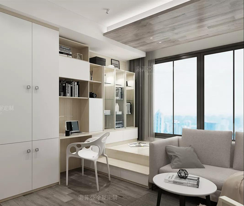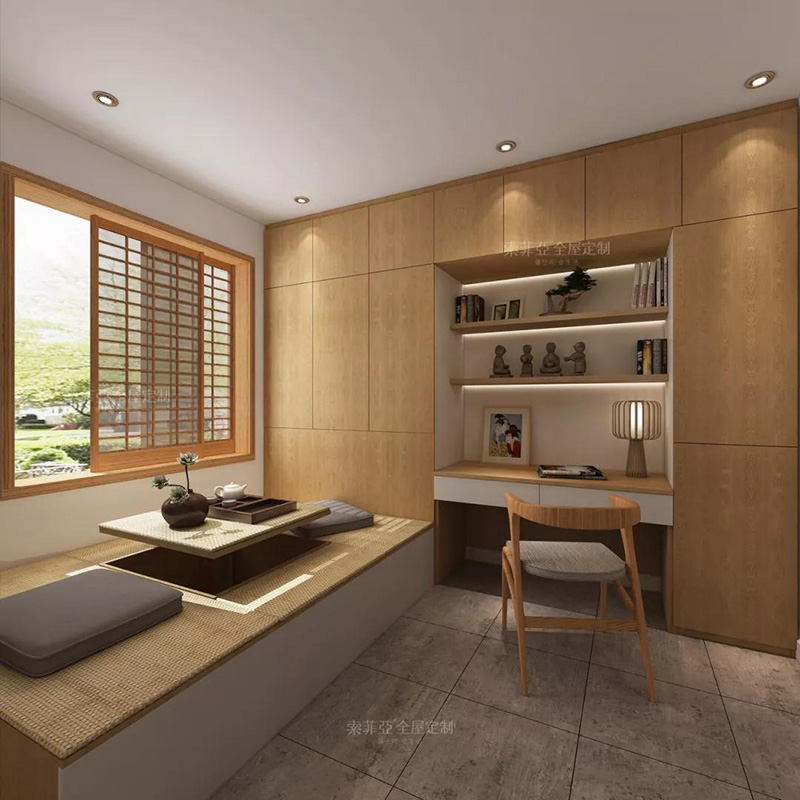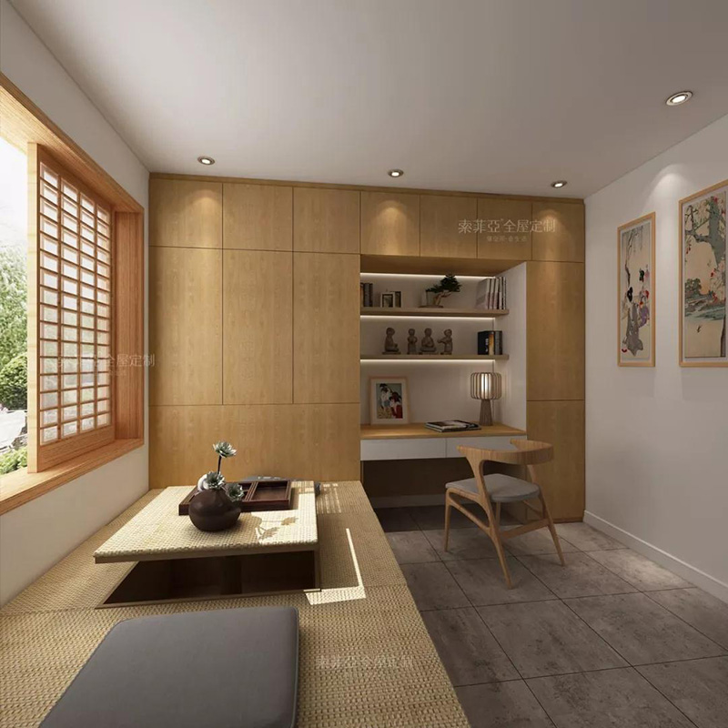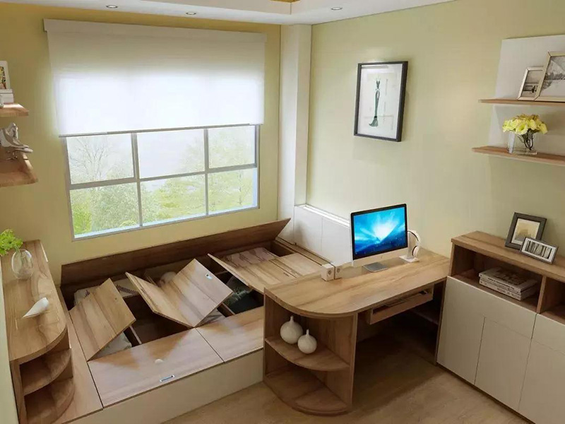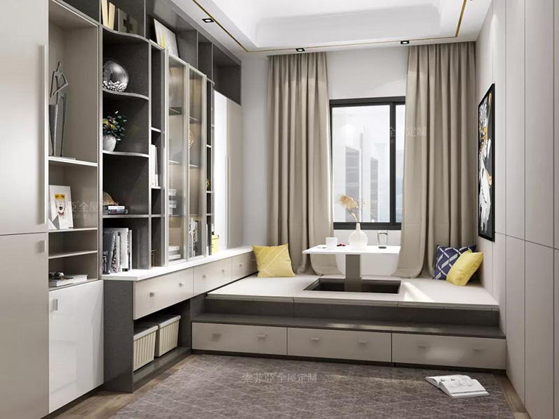 將榻榻米與書桌一體化,提高空間利用率。