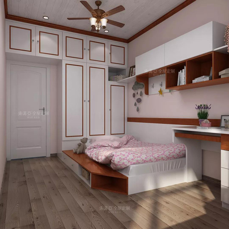 將榻榻米與書桌、衣櫃一體化,空間干練整潔。