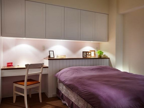 3簡約素雅小面積空間臥室,白色的墻壁粉刷四周,很干凈利落,墻壁上還有實木的吊櫃安置,三層的設計很實用,存放一些衣物和展示品,都是很方便的,同時也更好的節約了面積空間。一張小床緊挨著墻壁,得到了規劃和布置。室內還有小書桌的擺放,在窗前能夠很好的採光,對眼睛也形成了呵護。