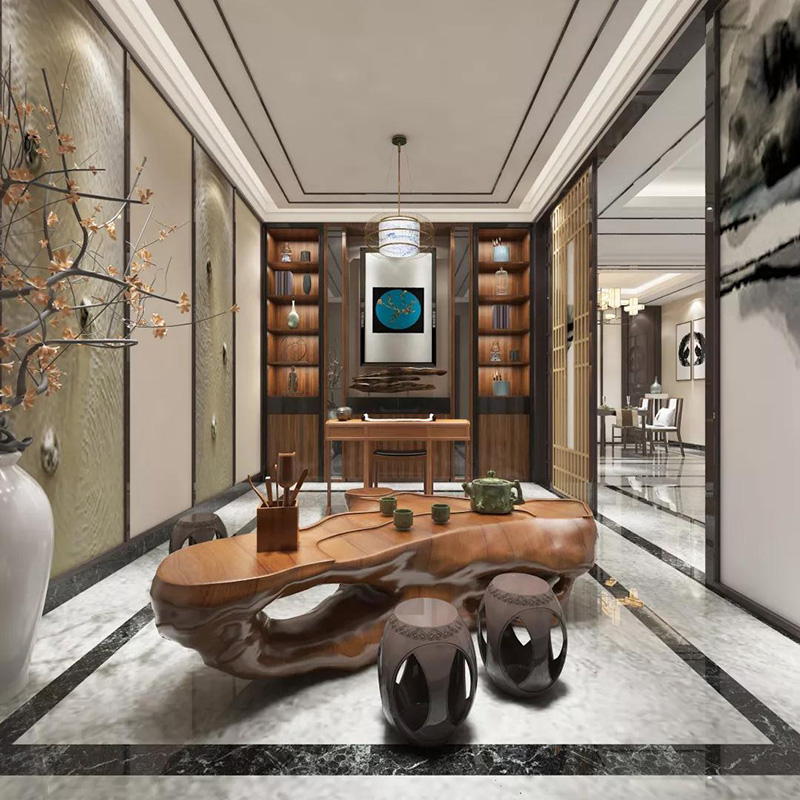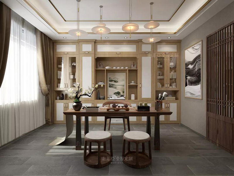 茶韻悠長的格調與新中式書房的墨香韻味,相得益彰。