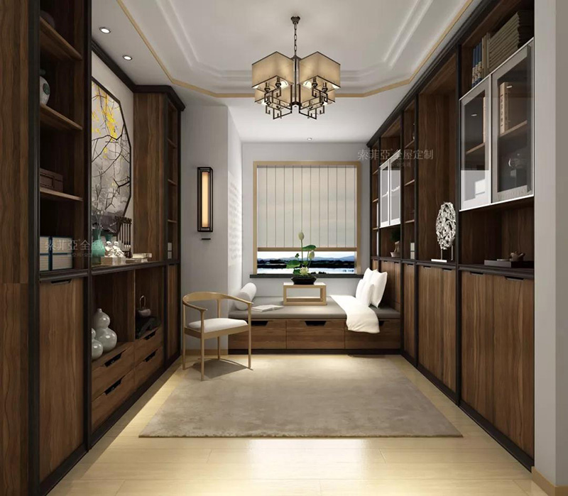 假如覺得這樣的布置太過單屌,還可以考慮將書房和茶室合二為一。