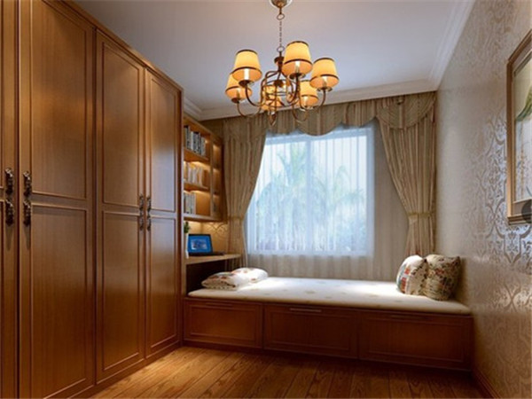 這款田園風非常的休閑自然,實木的材質給人的第一感覺就是高雅、特別。衣櫃造型方正、簡單,無需過多的裝飾,而且非常好保養、清潔,也大方利落,榻榻米多功能的儲物櫃設計,讓收納變得更加輕松。