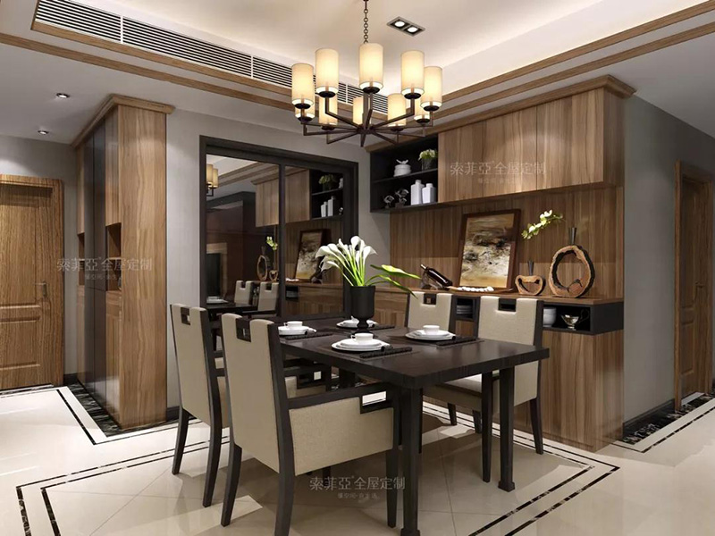 中國傳統的配色,素雅清淡的取色映射中式樸素低調的美學。@蘇澤家的餐廳便以胡桃木色、烏木棕色為基調,營造雅致的用餐氛圍。