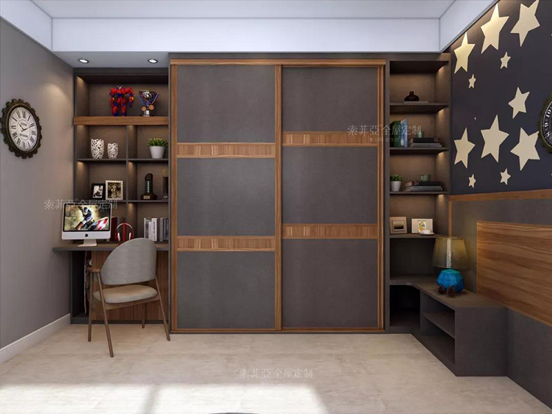 而書桌+衣櫃+儲物格的設計,則滿足了兒子未來10年的生活學習需求~