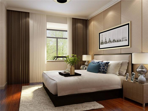 2、臥室設計注重私密與舒適,在進行臥室裝潢設計之前,好在晚上到新居去觀察一番。一看臥室窗口是否與別家窗口對著。如果樓宇之間的距離過近,就得考慮用厚實的窗簾了。另外,臥室的私密性還包括隔音,不僅對室外要隔音,對室內同樣也需要隔音。
