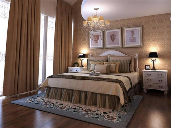 30坪左右的臥室面積是比較大的,在設計的時候色彩圖案要和諧,一般墻面壁紙的顏色要和諧一點,不能選擇太多艷麗的色彩,那樣會影響睡眠。還有就是在房間整體顏色設計中要以暖色調為主。
