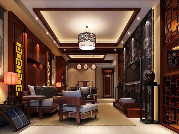 對于中式裝飾來說,燈光的布局也是十分關鍵的,若是運用得當,對于調節居室氛圍非常有效,中式裝扮的色彩講究的是一種流動,以棕色為主,這種色系古樸、自然,不過若是房屋的整個色調都是棕色,會給人一種壓抑感,這時就需要用燈光來調節。