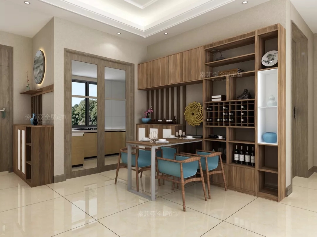 新中式多采用對稱式的布局方式,造型簡樸優美,凸顯高雅格調。