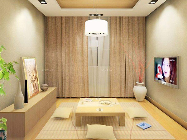 在裝潢日式小戶型時,應選擇白色、米色等淺色系作為空間的主色調,如墻壁與吊頂可以采用白色,並搭配一些同色系裝飾品,千萬不可以使用深色系,避免讓人茶室壓抑、沉悶的感覺。此外,還可以使用鏡子作為裝飾,從視覺上擴大空間。
