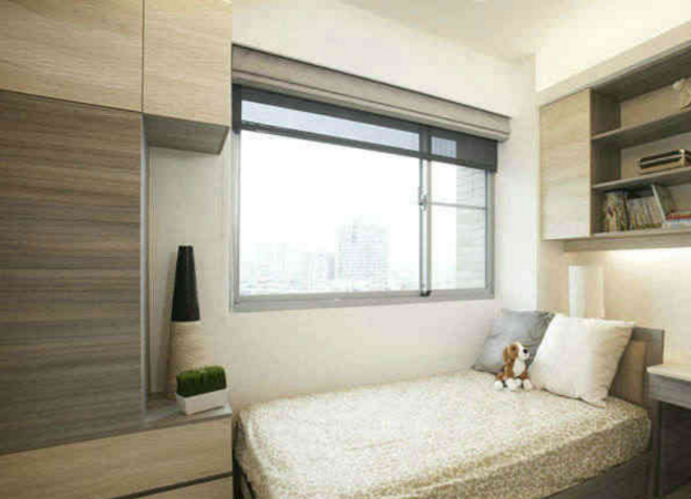 九坪左右的臥室算是比較小的臥室了,一個人住都顯得有點小,而兩個人住顯得狹隘。正常起居除了需要一張小床外還得有一張桌子,衣櫃。這樣的話真的很小,當然衛生間是不包在內的,不然沒法住。