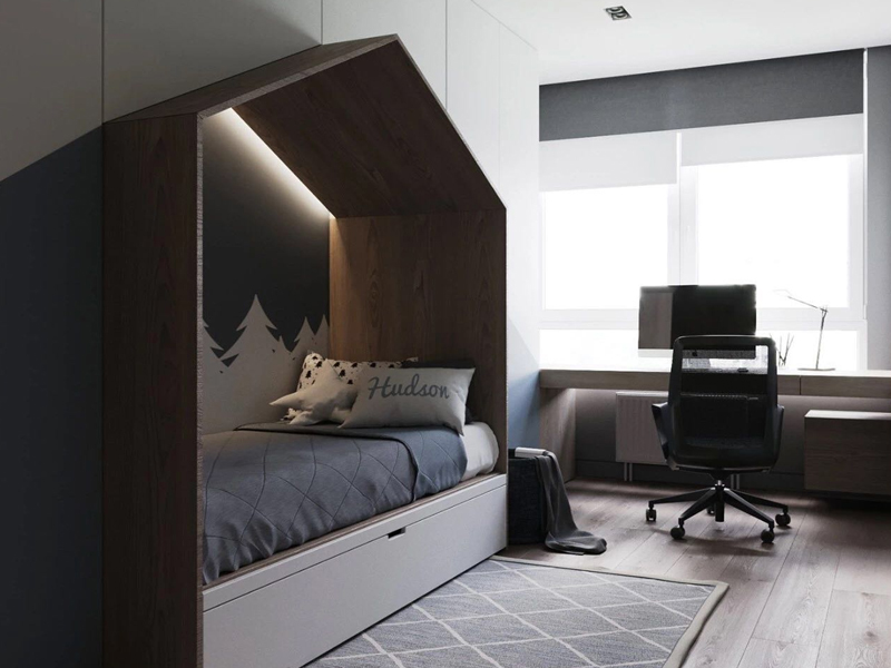首先是床的擺放位置,床位靠墻的話,會給人一種心理上的安全感,覺得有所依靠,這樣就可以提升人們的安全感,從而就可以提升睡眠質量