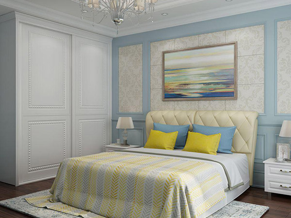考慮到臥室功能的多樣性,缺少不了家具,衣櫃這些,在小空間里可用的空間就越來也少了,為了更好的給臥室進行裝飾,床頭筆畫、床上方、櫃子都可以很好的利用