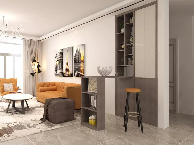 這種造假墻的做法也是最常見的,在櫃子的一側,砌一堵側墻,營造視覺上的整體感。