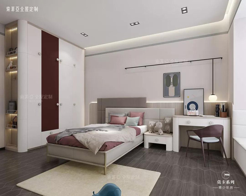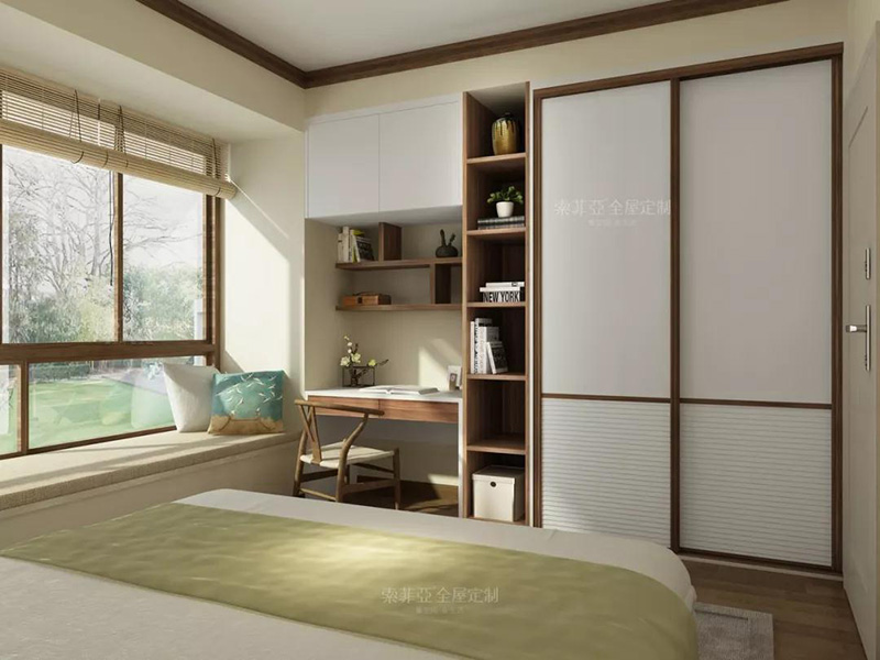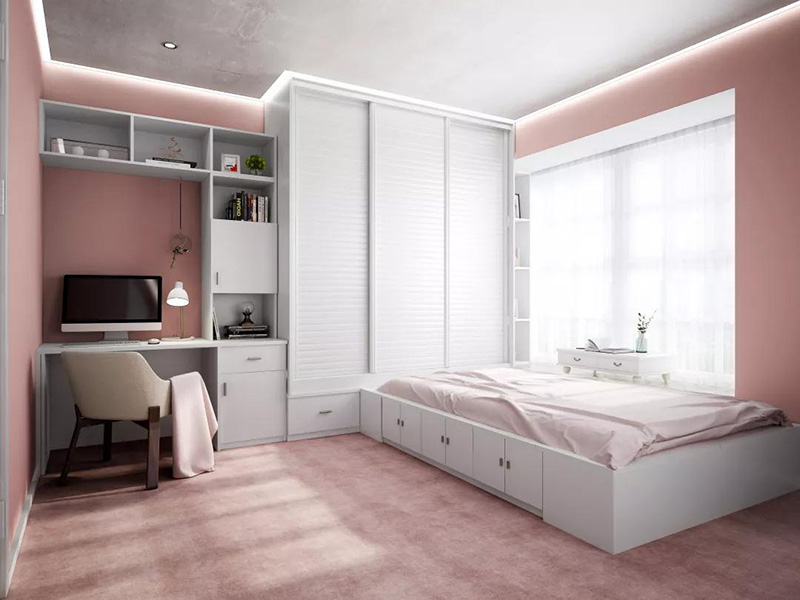 置頂衣櫃+書桌一體式設計,也深受小臥室歡迎。▼