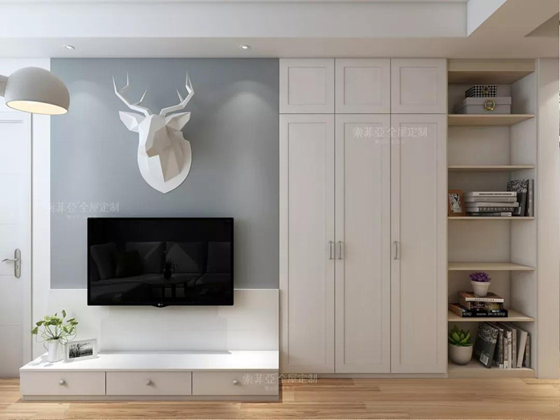 當然,在櫃子不能做到頂的情況下,可以在櫃上面做封邊,從外表看起來像是置頂一樣,而家里櫃子不能內嵌的情況也很多,還是要看戶型和自身的的需求,綜合做選擇。