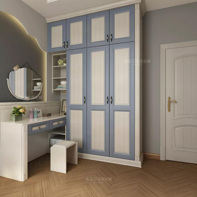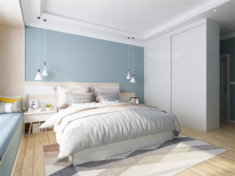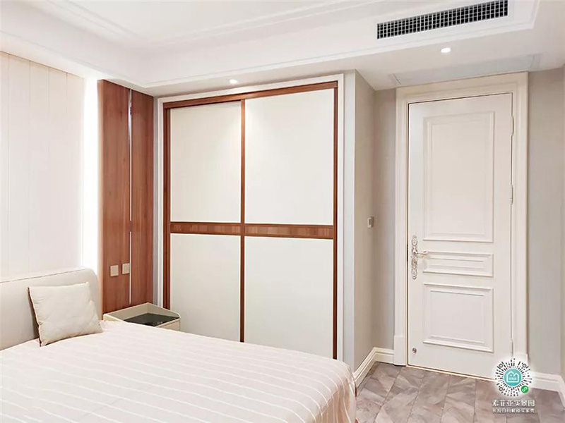 一櫃到頂的衣櫃設計,外表看上去更加簡約大氣,整體與墻面融合在一體,做櫃門和拉手的選擇時,一般采用趟門,也可以選擇使用掩門,掩門通常會搭配隱形拉手設計或者是長條拉手,線條干練極簡,特別適合北歐風和現代風家居風格。