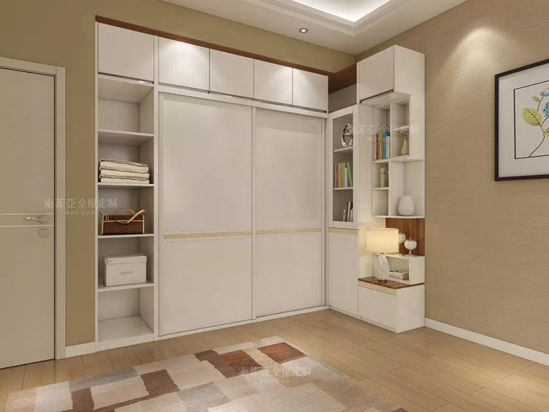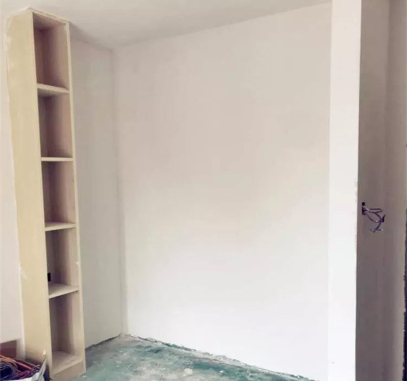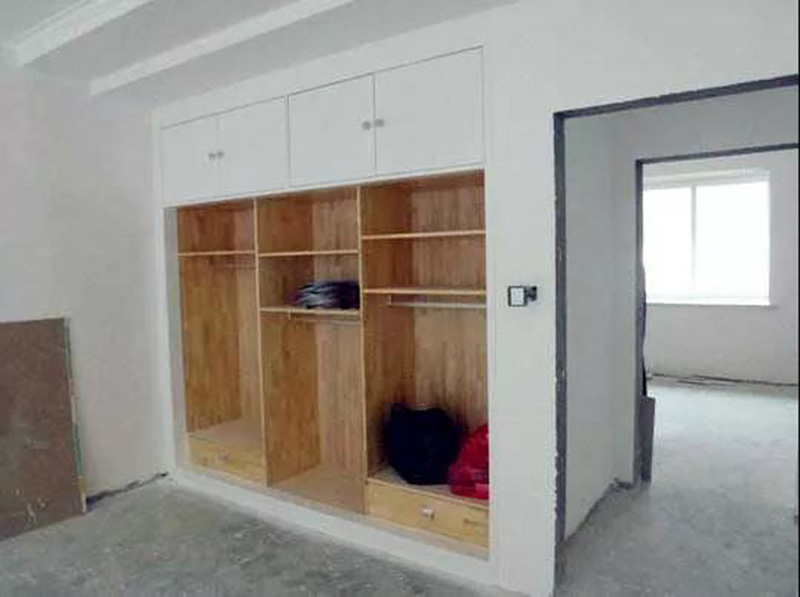 在衣櫃的邊上砌墻或者用石膏板造一面假墻,這樣從視覺上就好像把櫃子做成嵌入的效果。