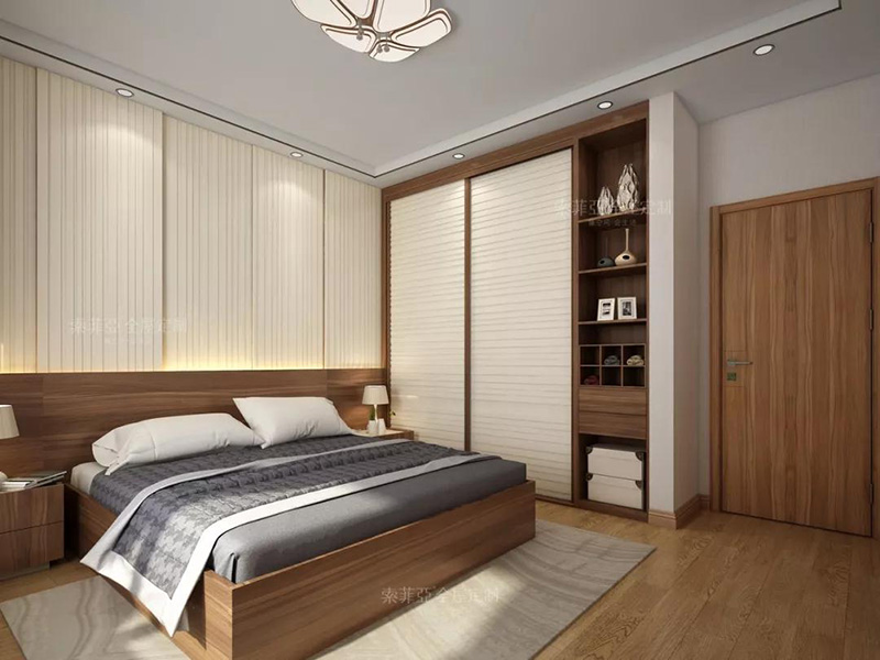 砸掉臥室一面非承重墻,在衣櫃頂面做吊頂,整體看上去就櫃子是嵌入墻面的,比普通衣櫃更美觀一些。▼