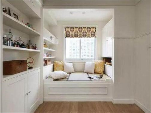 就算家里沒有飄窗,也可以利用窗戶和地櫃打造一個假飄窗,還可以多出很多的儲物空間。具體就是靠窗戶做一排地櫃,直接坐在上面即可,二來可以放東西。還有就是,靠窗做一排地櫃可以,也可以將窗戶兩邊做成到頂的櫃子,收納空間又增加了。