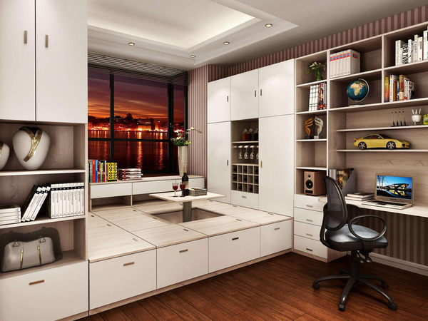 榻榻米的箱體蓋板一般都是實木的,所以比較沉,取放衣物時拿起來比較吃力。當然,市場上也有帶液壓桿的箱體蓋板,掀起來就更容易了,只不過液壓桿結構的箱體造價也高。一些小的設計加上精巧的做工會給客戶帶來很大的便利性,所以朋友們在購買的時候不要有這種想法:“看上去都一樣”。一定要切實的考察一下地臺的結構,不要讓現在所謂的新的工藝模糊了雙眼,傳統的有時候反而更好!不要把家具做出來之后是好看不好用。