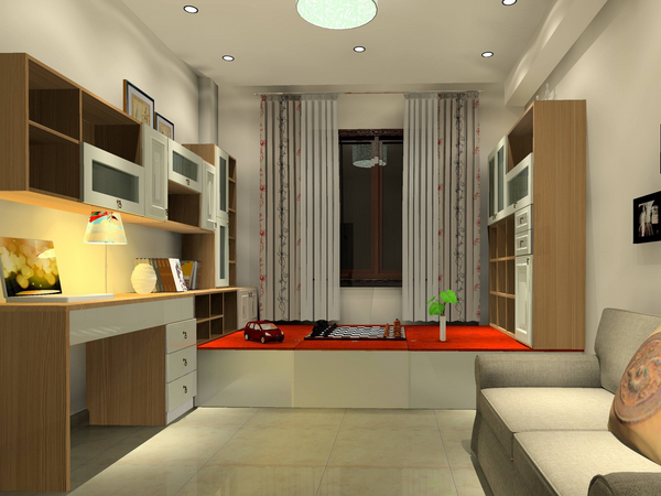 榻榻米之下的空間可以作為儲物空間,設計時要注意面板的承重能力。結實耐用的實木面板作為面是很好的,如果家里有安裝地暖,那么榻榻米之下的空間就不宜作為儲物空間了,對儲物空間的物品加熱,也許會損壞物品。