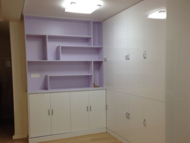 木工衣櫃:業主可以親自采買材料,挑自己滿意的材料,比較容易控制,但板材是否環保需要深度了解。同時要注意后期在貼面、封邊的時候可能會用到大量的膠,膠的污染非常不易控制,需要逐環節把握,比較容易忽略。