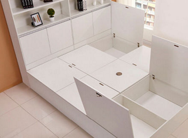 2、榻榻米可以做成箱或實體。箱體內部可以儲藏物品,適合儲藏空間較小的家庭。