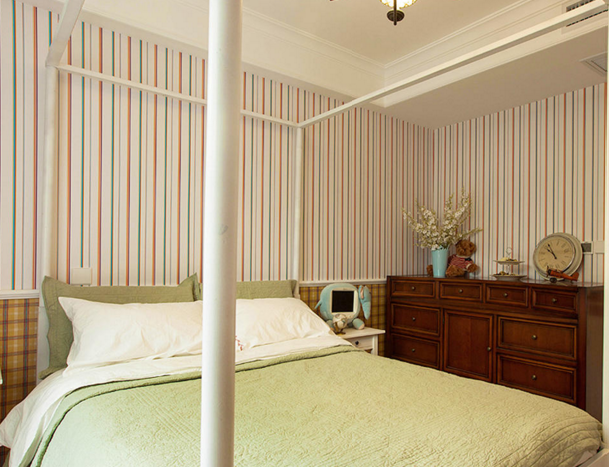 暗色系壁紙,一般適合空間寬敞或偏明亮的臥室使用。這類的壁紙好看,搭配卻比較難,因整片墻面暗色處理,對室內光線就會很難掌控。比如,用黑色底,紅色小壁虎圖案的壁紙,與玫紅色、黃色適量的搭配。這樣不僅好看,空間也更明亮,不壓抑了。