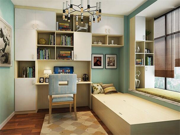 2、挑選具有上翻的功用的榻榻米。這么一來既能夠在床下儲物,又能夠在床邊放置推拉門衣櫃,不只節約了掩門平開的空間,並且順手就能拿取衣物,十分便當,床尾的書桌規劃也是一個亮點,規劃師在床尾規劃了敞開櫃,再運用敞開櫃拼搭上書桌,這么不只添加了儲物功用,也表現了客製化家私的。