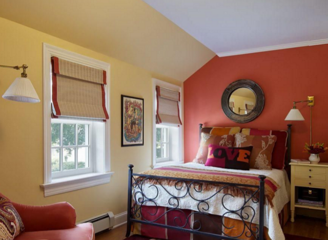 臥室的色調應以寧靜、和諧為主旋律,伴以素裝淡抹,這對于發揮臥室的功能會帶來理想的效果。面積較大的臥室,選擇墻面裝飾材料的范圍比較廣,任何色彩、 圖案、冷暖色調的涂料、墻紙、壁布均可使用;而面積較小的臥室,選擇的范圍相對小一些,小花、偏暖色調、淺淡的圖案較為適宜。