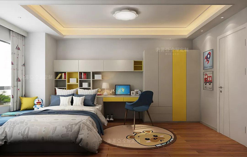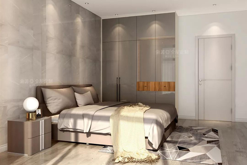 做成一櫃到頂還能充分利用垂直空間,頂櫃用作收納床品和換季衣物,下櫃收納日常使用的衣物,大大減輕收納壓力。