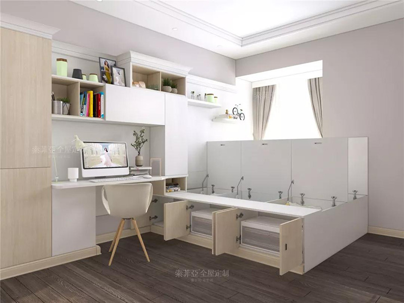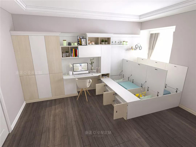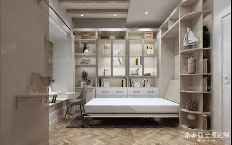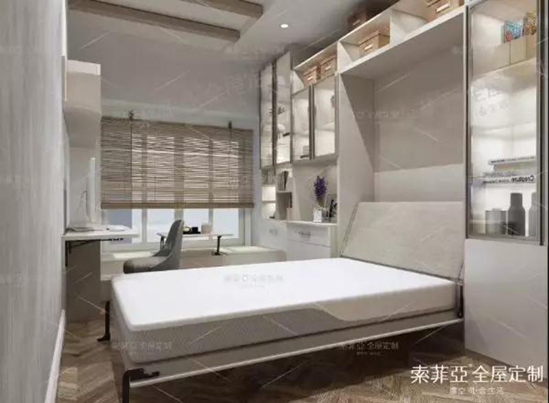 立翻床可以做到和衣櫃一體化,收起時,床與櫃體融為一體,不占空間。