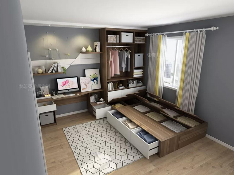 翻上去是櫃,翻下來是床。空間利用率超高,讓臥室可以節省出更多空間來實現個性化。