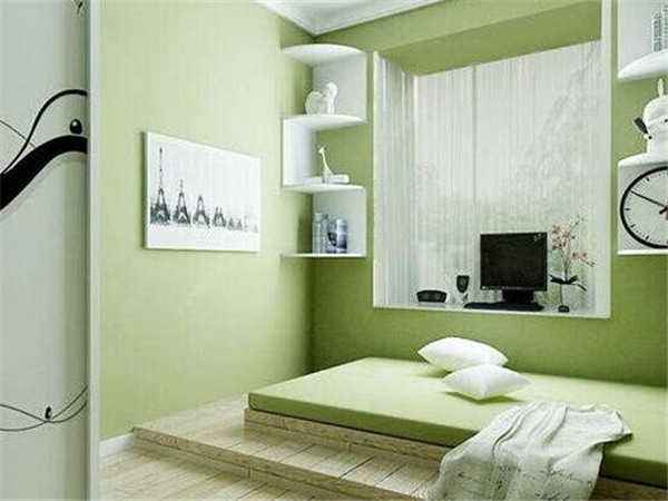 榻榻米在中國已經發揚光大,廣泛的出現在我們的生活中。房間的裝潢有著傳統的日系風情,古典又清雅,可以讓人得到更好的放松和享受。在房間的地面上鋪著淺綠色的竹席,上面有著精致的提花圖案,中間擺放著設計簡約的木質茶幾,擺放著精美的茶具。在房間的另一側則設計著棕色的木質展示架,在上面則可以帶來儲物空間。