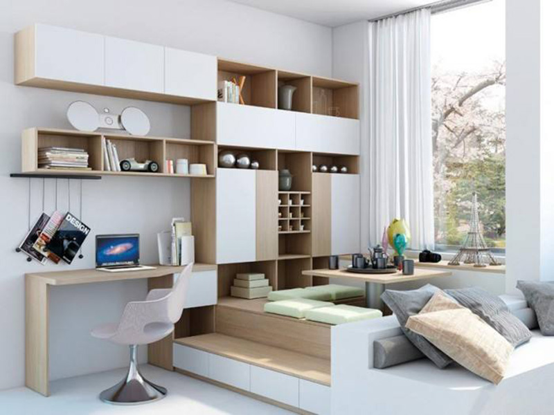 小戶型最怕的便是收納空間不夠,而榻榻米可以解決這一難題,在收納儲存界它稱第二無人敢稱第一。榻榻米就是櫃子倒下來的翻版,其儲藏收納能力驚人!
