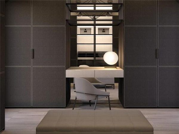 衣櫃梳妝臺組合設計3:梳妝臺與衣櫃組合設計,搭配高級灰、高級黑、中性原木色等,讓儲物空間更加豐富,既可以充分利用房間的每一寸面積,又能滿足我們的各種需求,十分便捷的設計。