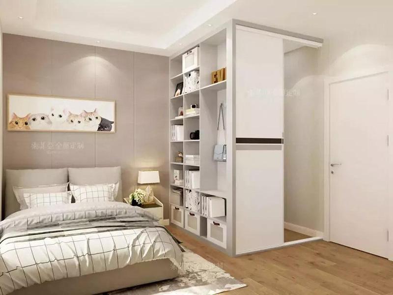 而假如臥室空間足夠充裕,用衣櫃隔斷出一個衣帽間也是非常實用的做法!